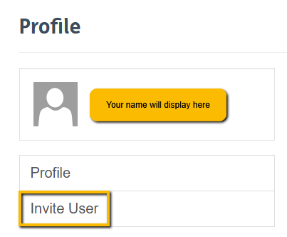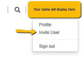 1. After logging into the Portal, either in the top right corner or on the left hand side, click your name and select "Invite User."